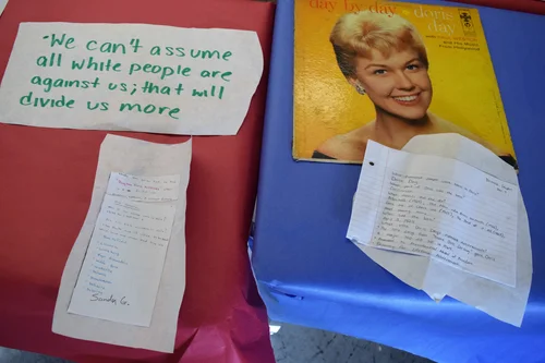 Thanks to Steve Biel for the reading list and Cleveland Stadium mustard; ML Shultze, WKSU in Kent, Ohio for taking us to downtown Akron and explaining so much, so well; Terry Armstrong, Courtney Gibson and the Politics and Government Club at Lordstown (OH) High for cultural exchange and friendship crossing state lines; Sam Quinones for fearless journalism; Bill Dever, Portsmouth (OH) attorney, for taking us to the heart of Ohio and our country's struggle to overcome opioid addiction; Kevin Kern, University of Akron, for condensing much of the Ohio history textbook he co-authored into a 20 minute Skype; Kristen Hayashi of the Los Angeles County Museum of Natural History, Cris McCall of McCall Art Advisory, and Paul Kopeikin of the Kopeikin Gallery -- each for priceless curatorial consulting; Chiquita Mullins-Lee of the Ohio Arts Council and Matt Hart, editor of Forklift, Ohio, for annotated bibliographies of Ohio poets; Regis Coustillac of the Wick Poetry Center at Kent State for bardic telling of Ohio winters and of adventuring beyond the bubble; Curt LeMieux and David Moran for keeping the pedagogy going; Oliver Shipley for the Nikon Camera; Ken Martinez, Victoria Vickers and all staff and students -- especially Brianna S. for the chiwowcow -- at Grand Arts HS who make it a great place to be; and finally to Girls Build LA for letting us use their room.