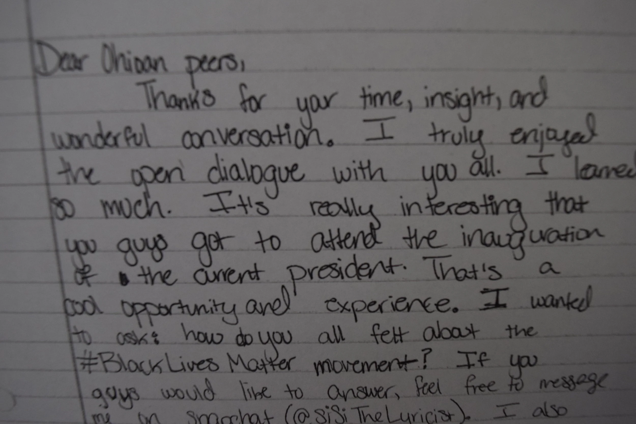 Sieara and T talking politics with Buckeye peers. Here's an article from their local paper about our connection.